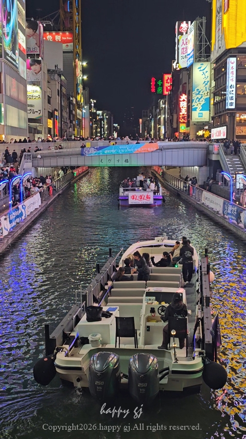 도톤보리 강을 지나가면서 풍경이 화려해서